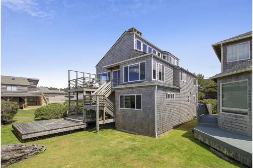 The patio door opens to the upper level of the two story ocean front deck. With a view of Haystack Rock to the north, the beach stretches in front of you as far as the eye can see.